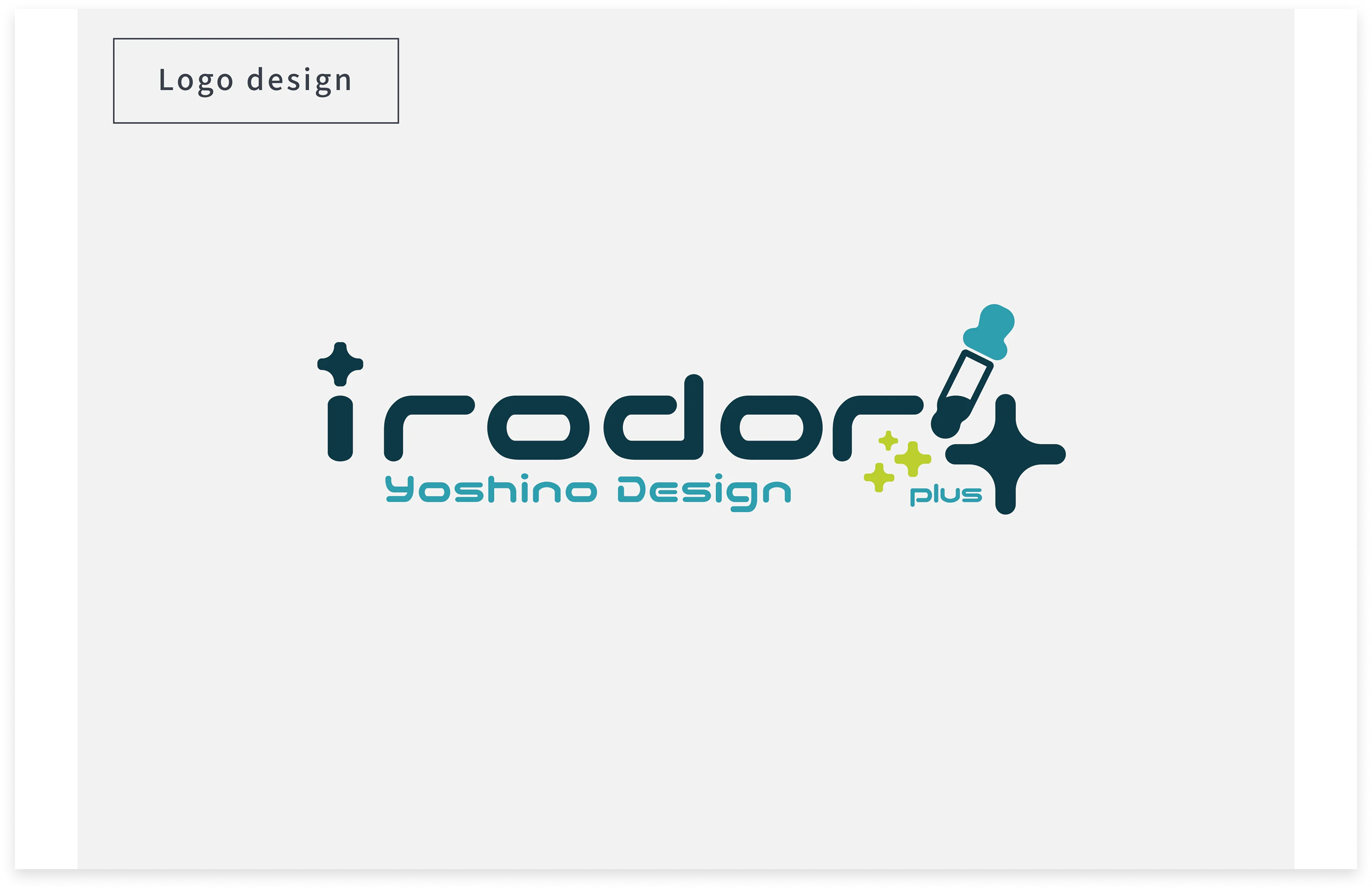 デザイナーとしてのコンセプト「irodori+ irodori plus」のロゴデザイン。